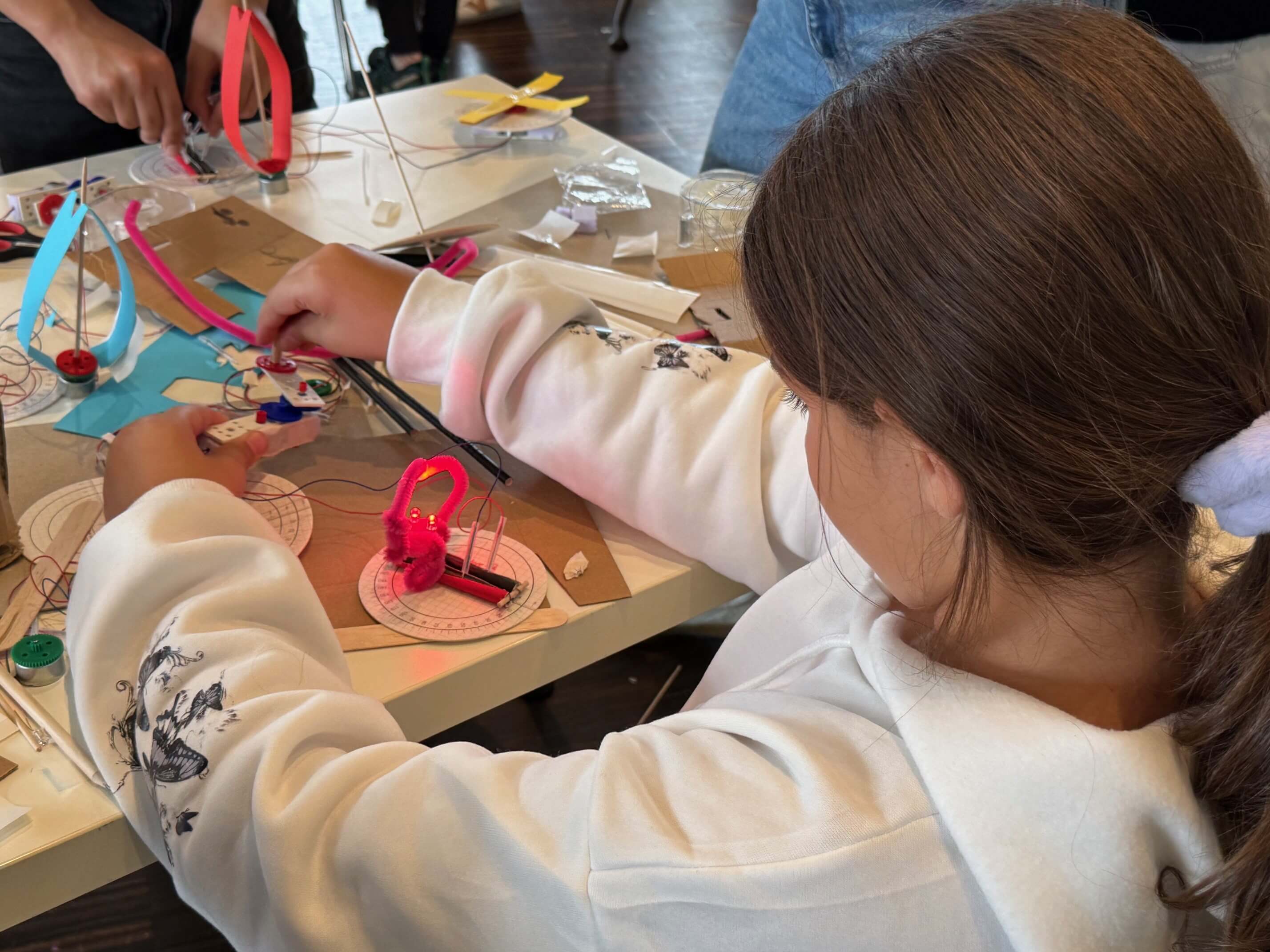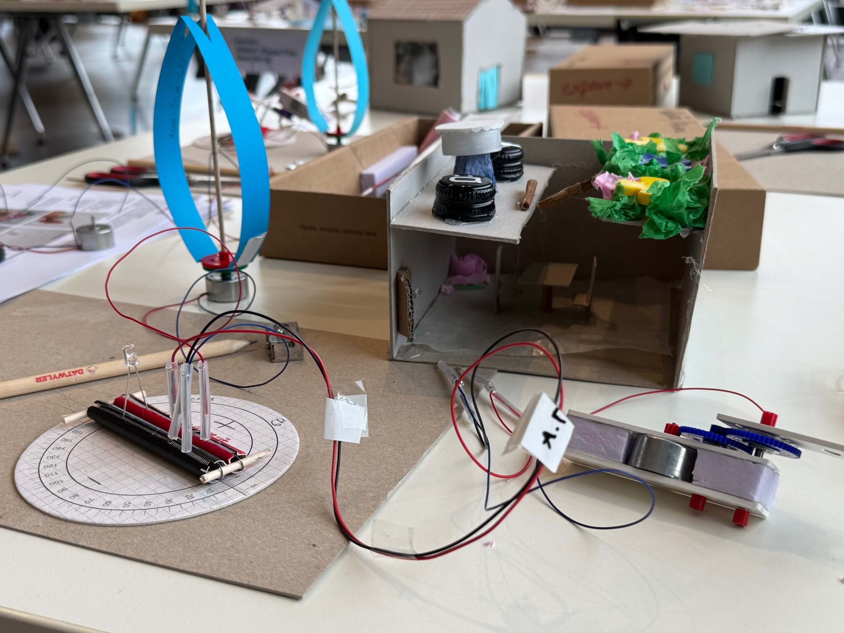 Mit einfachen Materialien entstanden Handkurbelkraftwerke, Stromkreise und ganze Mini-Siedlungen. Unterstützt wurden die Kinder von Lernenden der Dätwyler Gruppe, die mit viel Herzblut als Coaches dabei waren.